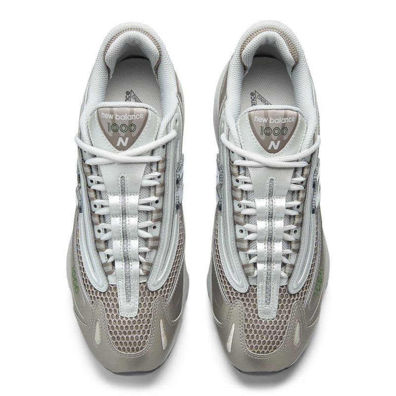 La reedición de la 1000 recupera una pieza clásica del cambio de milenio. Lanzada originalmente en 1999, la 1000 encarnaba el estilo atrevido y futurista de la época, enarbolando un diseño estilizado pero definitivamente trabajado. El diseño estándar de empeine de malla y superposiciones sintéticas está invertido, y cuenta con otras capas inferiores de malla que emergen de los paneles superpuestos más prominentes, para lograr un look estilizado e inspirado en la tecnología. Su suela segmentada ofrece amortiguación ABZORB en el talón y el antepié, con una caña Stability Web en el mesopié.