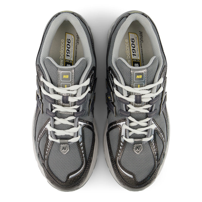 El modelo 1906, al igual que sus primos el 2002R y el 860v2, está liderado por una suela que combina la amortiguación flexible ACTEVA LITE, la absorción de impactos N-ergy y las cápsulas segmentadas ABZORB SBS en el talón. Este enfoque de alta tecnología también se refleja en el diseño de la parte superior del 1906, que cuenta con malla perforada y una serie de superposiciones sintéticas curvilíneas. Esta interpretación distintiva de las convenciones de diseño de la época ofrece una ejecución refinada de la herencia de alto rendimiento.
