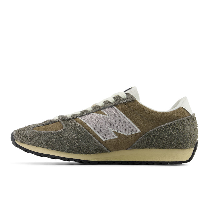 La 471 transforma la herencia del running de los 70 en un nuevo básico de diario, con una reinterpretación de las señas visuales distintivas de la época. Su estilizada entresuela de EVA de perfil bajo con forma de cuña y su suela de espiga ofrecen un punto de inicio familiar que permite otorgar protagonismo a los sofisticados materiales escogidos. Los materiales de primera calidad ofrecen un look desenfadado y desgastado, mientras que el clásico diseño dentado de la puntera es un toque visual único de New Balance que distingue a la 471 del resto.